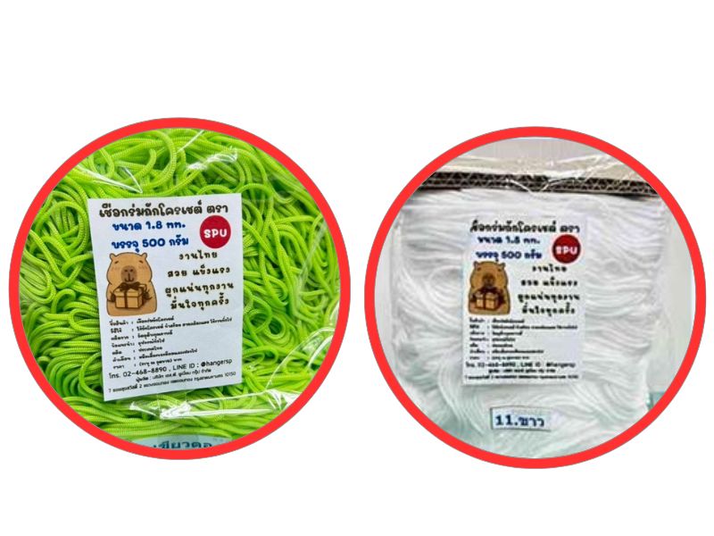 - สามารถผลิตเชือกได้หลากหลายแบบตามการใช้งาน เช่น การผลิตเชือกมัดเปล บริการผลิตเชือกมัดท้าย โรงงานผลิตเชือกกางเกง รับสั่งผลิตเชือกรองเท้า รับจ้างผลิตสายคล้องคอ โรงงานทำสายคล้องบัตร โรงงานผลิตสายกระเป๋า และยังมีบริการรับผลิตจั๊มหัวเชือกได้ครบวงจร เหนียว ทน อายุการใช้งานนาน