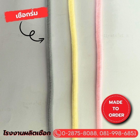 รับผลิตเชือกตามแบบ รับผลิตเชือกตามแบบ โรงงานผลิตเชือกตามความต้องการในราคาถูก เพื่อได้เชือกตามสเปคที่ลูกค้าต้องการ (Made to order)  สามารถสั่งผลิตได้ทุกแบบ ทุกขนาด ทุกสี เช่น เชือกมัดเปล เชือกมัดท้าย เชือกกางเกง โรงงานผลิตเชือกรองเท้า สายคล้องคอ สายคล้องบัตร สายกระเป๋า เชือกร่ม เชือกถัก เชือกทอ เชือกเทป เทปพัน เทปก้างปลา เทปต่อไหล่ เทปPP รับผลิตเชือกทุกชนิดตามสั่ง โรงงานรับผลิตเชือกตามแบบ ผลิตแบบ Made to Order ได้สินค้าตรงตามความต้องการแน่นอน ติดต่อสอบถาม โทร. 02-468-8890 | 081-828-7882